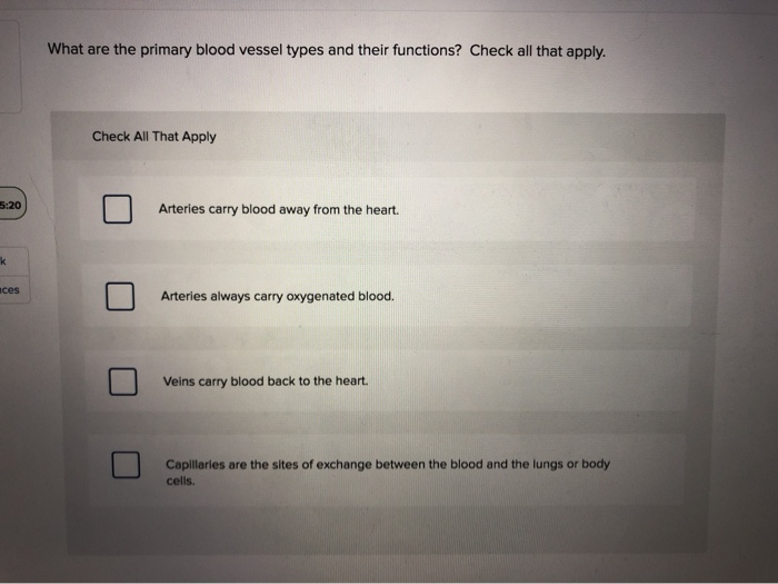 Solved What Are The Primary Blood Vessel Types And Their