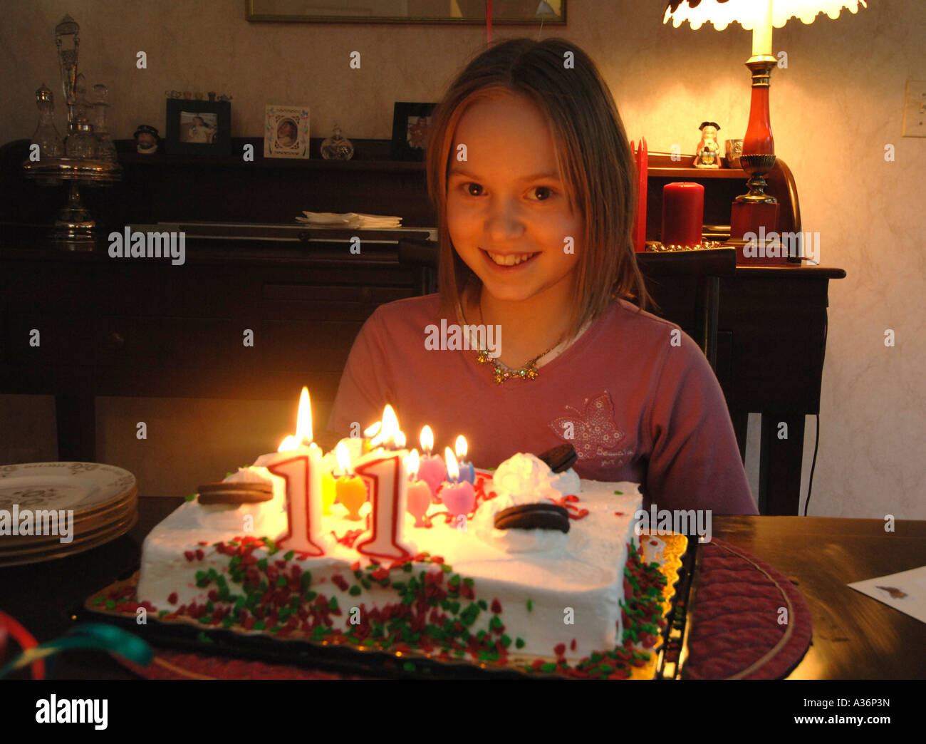 Birthday Girl About To Blow Out The Candles On Her Cake Stock