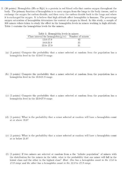 Solved 2 30 Points Hemoglobin Hb Or Hgb Is A Protein