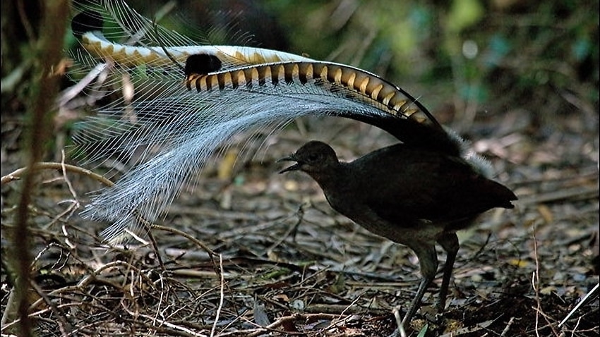 David attenborough presents the amazing lyre bird which mimics the calls of other birds and chainsaws and camera shutters in this video clip from the life of birds. The superb lyrebird can imitate nearly any sound he hears around him in the forest though he rarely mimics manmade sounds in the wild.